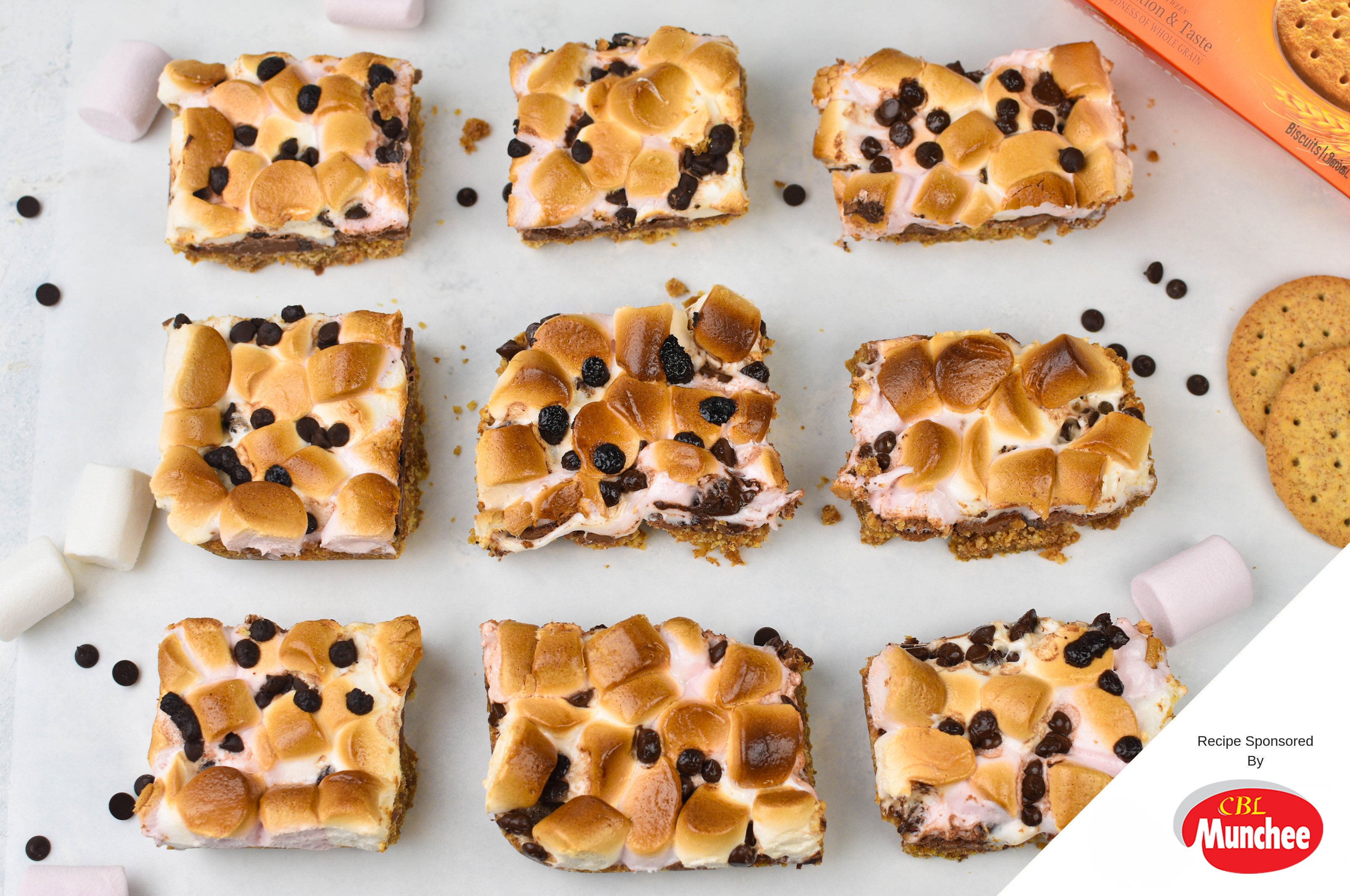These s’mores bars are so gooey and soft, made with a biscuit crust base topped with chocolate and marshmallows.
