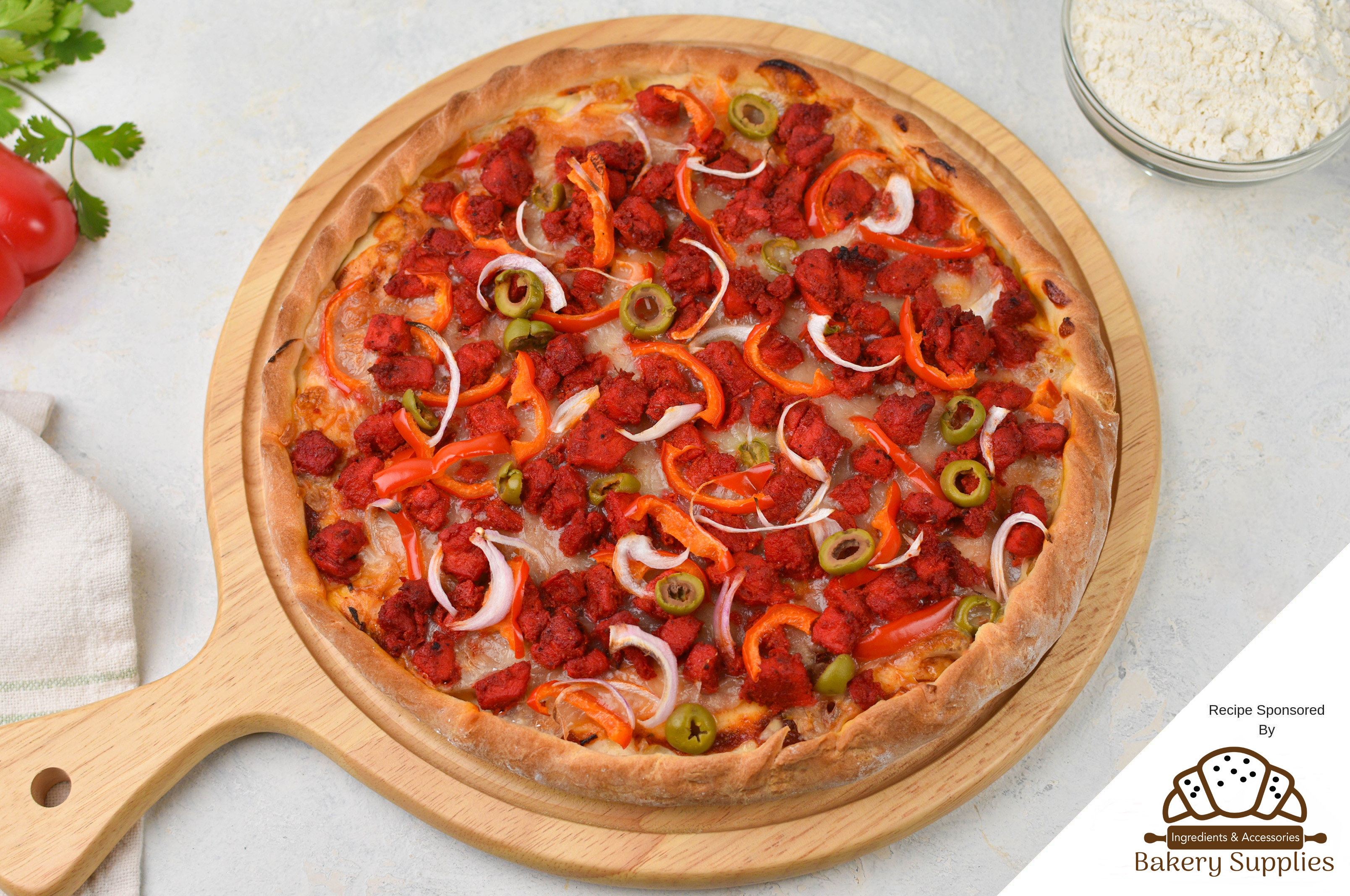 This tandoori pizza is so flavourful and enjoyable, topped with tandoori chicken, cheese, bell peppers, onion, and coriander leaves.
