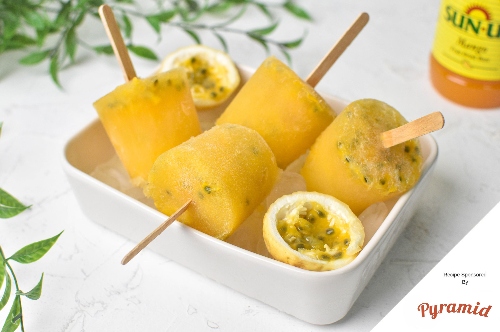 Bright and tangy, the tropical combo of mango and passionfruit in these ice lollies make for the perfect frozen treat on a sunny day by the beach.