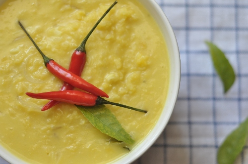 The Maldivian version of muguriha or dhal curry (lentil curry) is milder and creamier than its Indian counterpart. Made with just yellow lentils, turmeric powder, and coconut milk, it goes great with both roshi and rice!