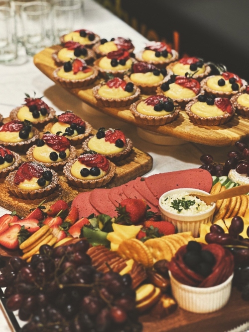 For the desserts, all of it is made by my sister, who is the baker of Boons Bistro. She makes the desserts at her house and takes them directly to the event venue where we do the final set-up with the other dishes.