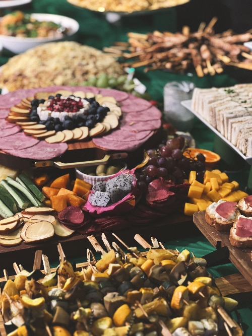On the day of the event, the last two hours before the actual event time is the most hectic, because that’s when the food assembly and final execution take place. This part is always done entirely by me because there are specific ways that I like to assemble food. Everything is mapped out and timed so I have to be very focused during this time. The last thing which is prepped is the charcuterie board. The ingredients for it are also bought at the very last possible minute to keep everything fresh.