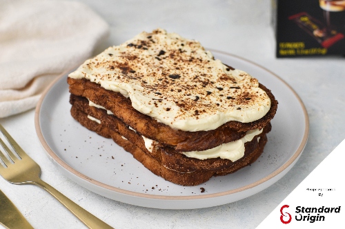 Inspired by the mash up of two much-loved desserts, this tiramisu French toast combines coffee, whipped cream, and soft bread for a rich and comforting treat.