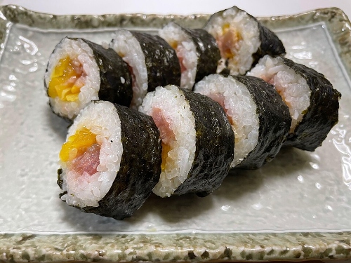 Popular maki fillings include tuna, salmon, imitation crab, cucumber, egg, avocado, prawns, and even pickled ingredients like daikon. The filling can be either a mix of ingredients or just one to give it a really clean taste. Small or thin rolls which usually have one ingredient fillings are called ‘hosomaki’ while thick or large rolls with more fillings are called ‘futomaki.’