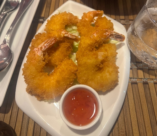 But the dish that really caught our attention was the shrimp tempura. Huge, crispy, and golden, they arrived perfectly fried and still steaming. The sweet chilli sauce on the side added that gentle kick and sweetness which paired really well with the crunchy coating.