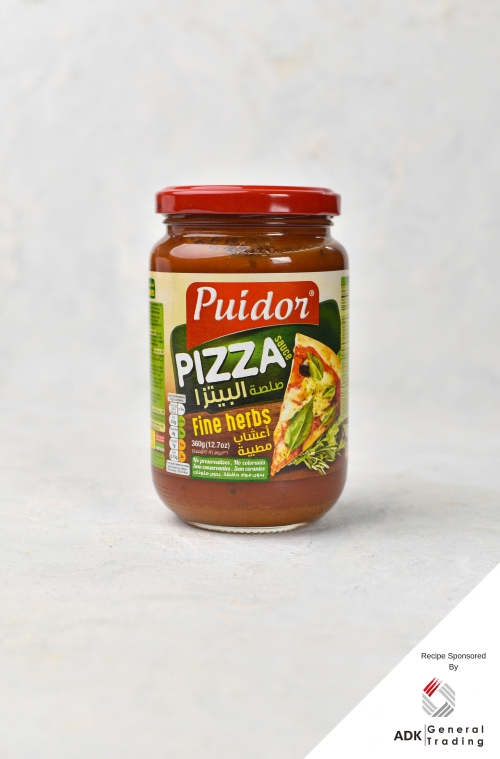 For our recipe, we have used Puidor Pizza Sauce – Fine Herbs, provided to us by one of our partners, ADK General Trading. This is a rich and tomato-forward sauce, with a well-balanced blend of herbs that adds depth and flavour without overpowering the toppings.