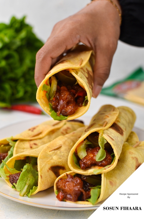 11. ރެޕް ހެދުމަށް ކޮންމެ ޓޯޓިއާ އެއްގައި ½1 ސައިސަމުސާ ޗިލީ ސޯސް ހާކާލާށެވެ. އަދި ކޮންމެ އެއްޗެއްގެ މައްޗަށް 1 ޖޯޑު ބޮޑުކޮށް ކޮށާފައި ހުރި ލެޓިއުސް އެއްވަރަށް ބަހާލައިގެން އަތުރާލާށެވެ.