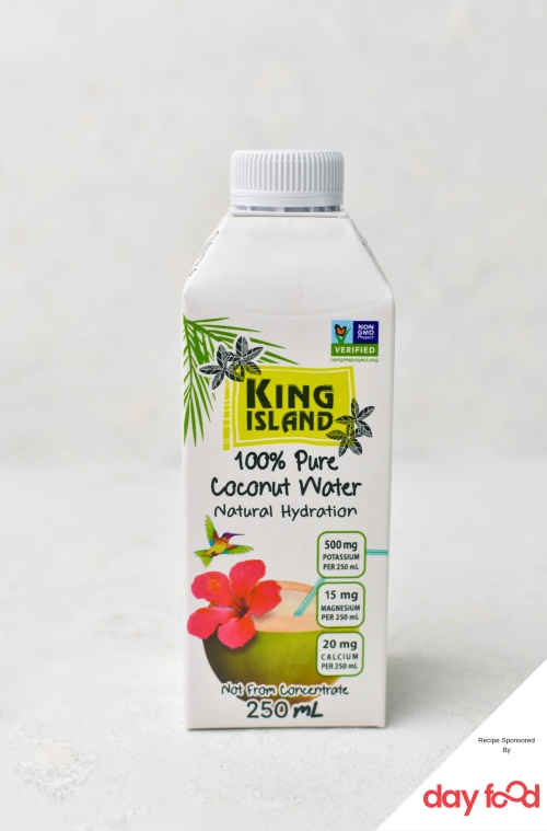 އަހަރުމެން މި ރެސިޕީގައި ބޭނުންކުރީ އަހަރުމެންގެ އެއް ބައިވެރިއެއް ކަމަށްވާ ޑޭފުޑްގެ ފަރާތުން ލިބިފައިވާ، ކިންގް އައިލެންޑް %100 ޕިޔޯ ކޮކޮނަޓް ވޯޓަރ އެވެ. މިއީ ތައިލެންޑްގެ ފެހި ކުރުނބަލުން ހަދާފައިވާ ފެނަކަށް ވުމުން އިތުރު އެޑަޑް ޝުގަރ އެއް ނުވަތަ ޕްރިސަރވޭޓިވްސް އެއް ނުހިމެނެއެވެ. އަދި މިއީ ކޮލަސްޓްރޯލް ފްރީ، އެލަރޖަން ފްރީ އަދި ގްލޫޓެން ފްރީ ފެނަކަށް ވުމުން ބުއިންތަކަށް އަޅާލަން ނުވަތަ އޭގެ ގޮތުގައި ބޯލަންވެސް މީރެވެ.