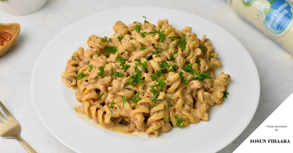 This is a creamy and flavourful dish that is easy to make and perfect for cheese lovers. The rich and tangy taste of blue cheese gives the pasta a delicious twist.