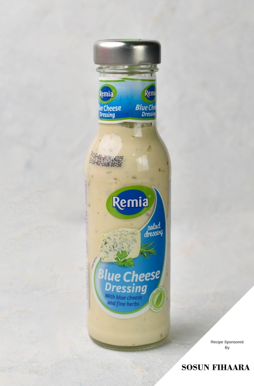 For our recipe, we have used Remia Blue Cheese Dressing, provided to us by one of our partners, Sosun Fihaara. This is a creamy, tangy salad dressing made with blue cheese, fine herbs and a subtle hint of garlic. It can also be used in sandwiches, burgers or as a dip.
