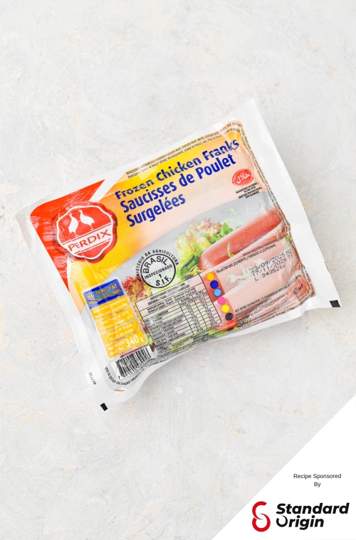 For our recipe, we have used Perdix Frozen Chicken Franks provided to us by one of our partners, Standard & Origin (S&O). These sausages are a good source of protein and contain no trans-fat. They are convenient and easy to prepare a quick meal with.