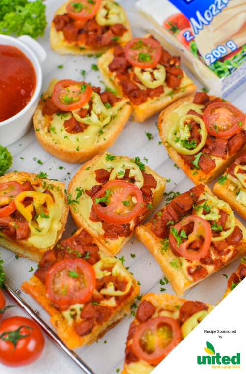 These are the perfect combination of garlic bread and pizza. The bread is slathered in a garlicy butter sauce, topped with cheesy mozzarella, and sausage and capsicum. You can also change up the toppings how you like.