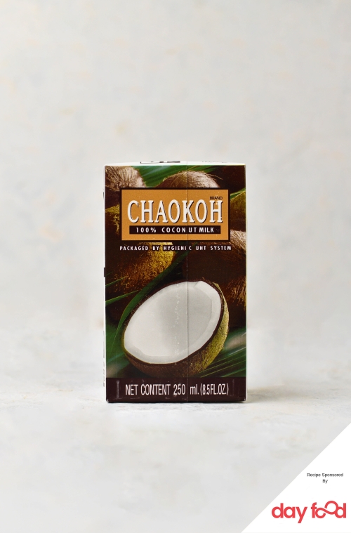 For our recipe, we have used the Chaokoh 100% Coconut Milk, provided by one of our partners, Day Food. This coconut milk is very creamy and rich, making it perfect for using in curries, soups, smoothies, and even desserts.