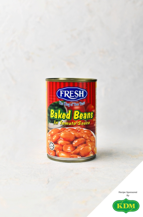 For our recipe we have used Fresh Baked Beans, provided to us by one of our partners, KDM. The Fresh Baked Beans is packed in a rich tomato sauce, making it quick and easy to prepare. The beans are perfectly soft and has a nice creamy flavour. These are perfect for recipes like shakshuka, curries and even just simply on toast.