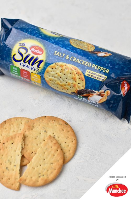 މި ރެސިޕީގައި އަހަރުމެން ބޭނުންކޮށްފައި މިވަނީ، އަހަރުމެންގެ އެއް ބައިވެރިއެއް ކަމަށްވާ ޕިރަމިޑްގެ ފަރާތުން ލިބިފައިވާ، ސީ.ބީ.އެލް މަންޗީ ސަން ކްރެކާ- ސޯލްޓް އަދި ކްރެކްޑް ޕެޕަރ ފްލޭވަރއެވެ. މިއީ މުރަނަކޮށް ހުންނަ، ލޮނު ރަހަދޭ ބިސްކޯދަކަށްވުމުން ޕާސްޓާގެ މައްޗަށް އެޅުމުން ވަރަށް މީރެވެ. މި ބިސްކޯދަކީ ހުހާވެސް ކާލަން މީރު ބިސްކޯދެކެވެ.