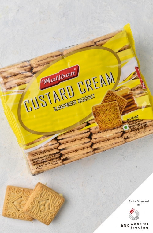 މި ރެސިޕީ ހެދުމަށް އަހަރުމެން މިފަހަރު ބޭނުންކޮށްފައި މިވަނީ، އަހަރުމެންގެ އެއް ބައިވެރިއެއް ކަމަށްވާ، އޭ.ޑީ.ކޭ ޖެނަރަލް ޓްރޭޑިންގެ ފަރާތުން ލިބިފައިވާ، މަލިބާން ކަސްޓަޑް ކްރީމް ސޭންޑްވިޗް ބިސްކަޓްއެވެ. މިއީ ކްރީމްޖެހި ބިސްކޯދަކަށް ވުމުން، ހުހަށް ކާލުމަށާއި ސަޔާއެކީ ކާލުމަށް ވެސް އެހާމެ މީރު ބިސްކޯދެކެވެ.